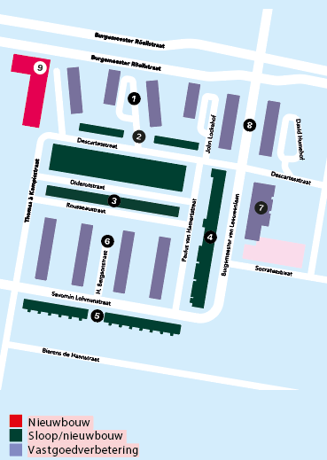 - Rousseaublok – Sloop/nieuwbouw. Uitvoering: 2028 - 2029.